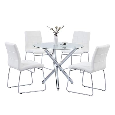 Dining Table With Chairs 4homart 5 Pcs Glass Dining Kitchen Table Set Modern Tempered Glass Top Table And Pu Leather Chairs With 4 Chairs Dining Room Furniture Black Furniture Home Kitchen Rayvoltbike Com from images-na.ssl-images-amazon.com Slightly sophisticated and super stylish, this glass top dining table is perfect for couples who may have a little bit of space to spare. It also features a round top made of solid and stylish glass. (0.0) out of 5 stars. Shop our best selection of glass top kitchen & dining room tables to reflect your style and inspire your home. 99 list list price $529.98 $ 529. We complete each glass top dining room set with complementary chairs, offering seamless collections with exquisite modern, transitional or traditional looks. By cosmoliving by cosmopolitan (1) charles 42.25 in. 4.7 out of 5 stars.